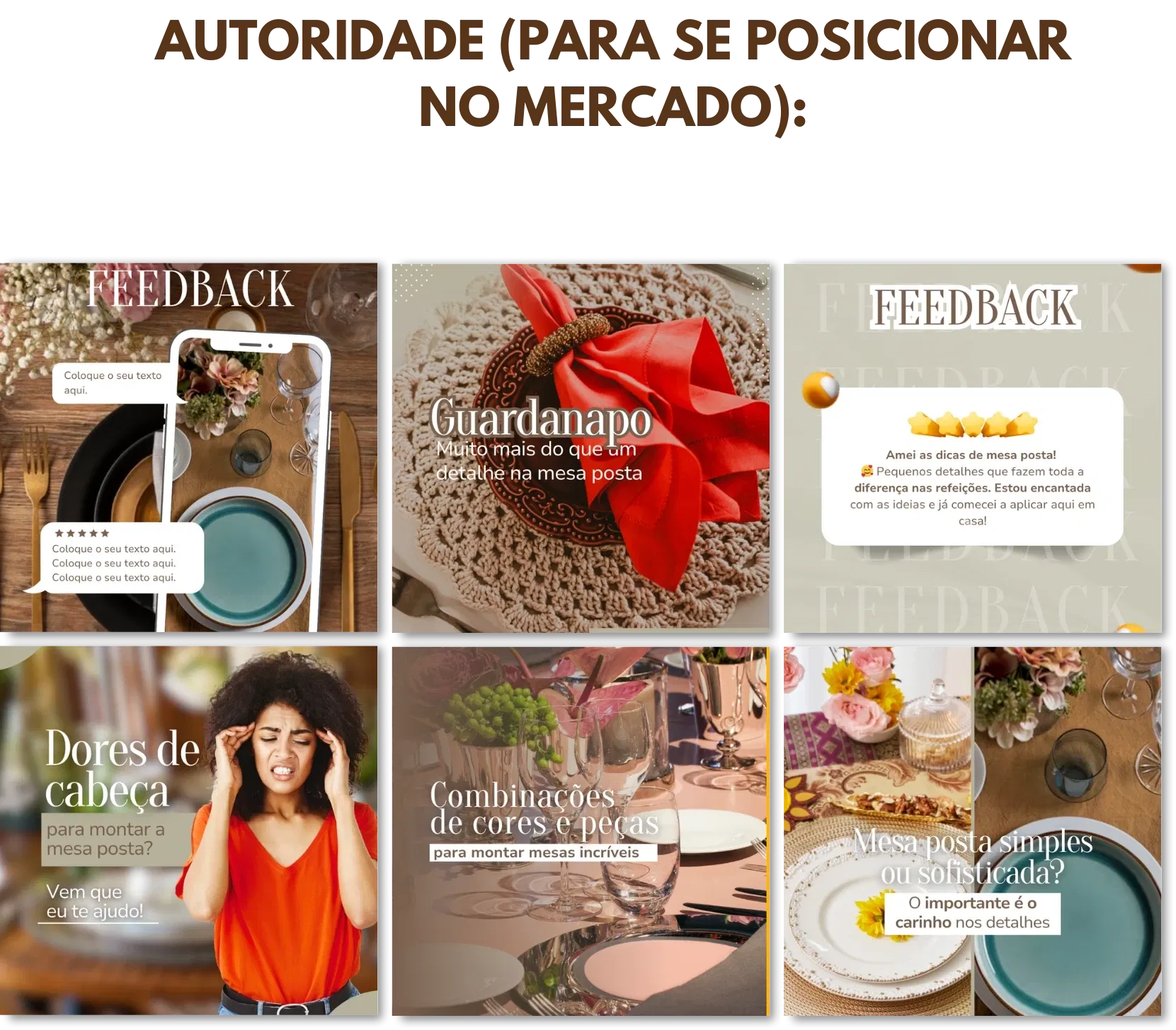 O pack é ideal para artesãs que trabalham com mesa posta iniciantes que querem começar com um Instagram profissional e para profissionais experientes que desejam aumentar sua presença online e atrair mais clientes.